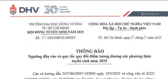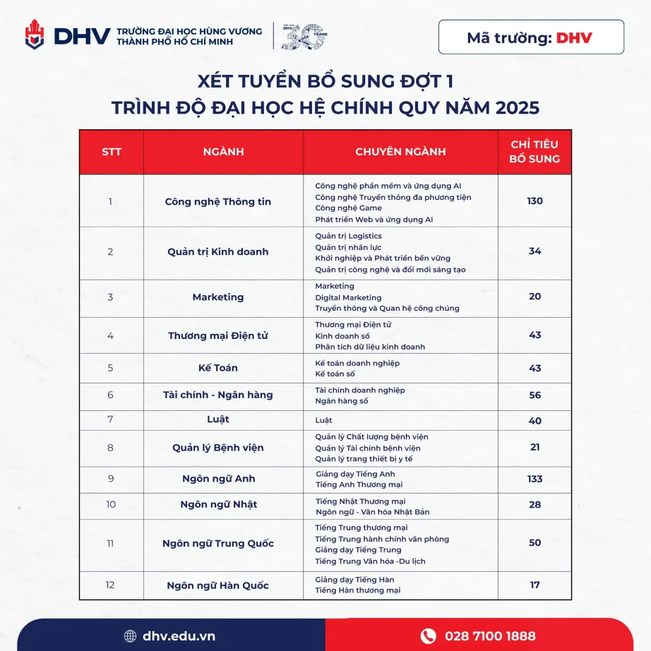 TRƯỜNG ĐẠI HỌC HÙNG VƯƠNG THÀNH PHỐ HỒ CHÍ MINH (DHV) CÔNG BỐ XÉT TUYỂN BỔ SUNG ĐỢT 1 2025